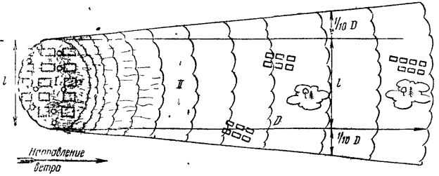 Скорость ветра оказывает влияние на концентрацию ОВ в воздухе. При слабом ветре зараженный воздух распространяется медленно, высокие концентрации сохраняются дольше, сильный, порывистый ветер быстpo рассеивает зараженный воздух. С увеличением скорости ветра повышается испарение ОВ с зараженного участка.