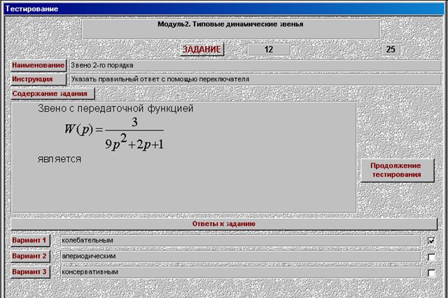 Рис. 3.2 - Одно из заданий теста, сгенерированного специализированной программой для тестирования (разработка кафедры АПП НМетАУ)
