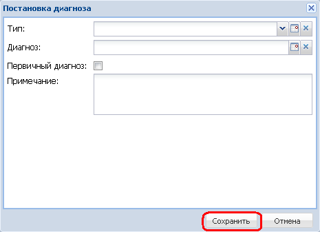 Для сохранения назначенного диагноза нажмите кнопку «Сохранить».