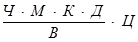 где Ч — количество однотипных деталей в одном механизме; M — число механизмов одного вида; К — коэффициент понижениязапаса деталей; Д — норма запаса деталей в одном механизме в днях; В — срок службы детали в днях; Ц — цена одной детали.
