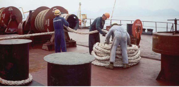 8. Не стойте внутри шлагов разнесенного по палубе швартовного троса. Подавая для швартовки трос, очищайте его от колышек.