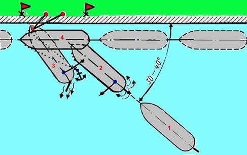 Швартовка правым бортом в этих условиях принципиально не отличается от описанной выше.