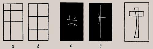Отсутствие равновесия не всегда передает момент текучести, присущей всей конфигурации в целом. На рис. 8 симметрия римско-католического креста показана настолько жестко, что кривая линия воспринимается просто как какое-то искажение фигуры в целом. Здесь, следовательно, равновесие модели чувствуется до такой степени, что дает возможность изолировать все остальное как навязчивый элемент. При таких условиях отсутствие равновесия вызывает появление местной, локальной помехи в восприятии единства целого.