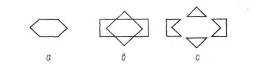 Другие эксперименты показали, что если данная фигура, сотни раз предъявляемая наблюдателю, запечатлевается в его памяти, она, тем не менее, остается неузнаваемой, когда показывается в новом контексте. Например, несмотря на то, что фигура на рис.21,абыла тщательно изучена, фигура на рис.21,bспонтанно воспринималась как прямоугольник и квадрат, а не как знакомый уже шестиугольник, окруженный формами, представленными на рис.21,с. Подобные примеры с маскировкой показывают, что когда внутренняя структура стимулирующей модели слишком противоречит той, что была изучена раньше, то в этом случае даже могущество прошлого опыта не сможет оказать своего эффекта.