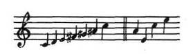 Семь элементов (нот) полной октавы объединены в модель и последовательно усиливаются через определенные интервалы. На рис.27 справа имеется всего лишь четыре элемента, тем не менее, эта модель является менее простой по сравнению с первой. Она содержит элементы: понижающийся четвертый, движущиеся вверх пятый и третий. Кроме того, использованы два различных направления и три различных интервала. В результате структура модели, несмотря на меньшее число элементов, выглядит более сложной.