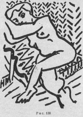 восприятии на передний план. В эстампе Матисса (рис. 138) относительно пустое тело женщины выглядит отверстием в разорванном окружении. Выходит, таким образом, что степень плотности или твердости помогает определить расположение поверхности по глубине.