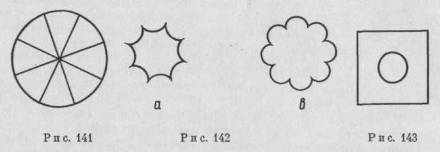 Впервые попытка систематического исследования психологического феномена «фигура — фон» была предпринята Е. Рубиным. Он обнаружил ряд условий, которые определяли, какая поверхность в данной модели приобретает характер «фигуры». Одна из открытых им закономерностей гласит, что поверхность, заключенная в пределах определенных границ, стремится приобрести статус фигуры, тогда как окружающая ее поверхность будет фоном. Это, вероятно, влечет за собой еще одну закономерность, согласно которой поверхность, обладающая меньшей пространственной площадью, становится при определенных условиях фигурой. Узкие полоски или сектора, изображенные на рис. 135, воспринимаются лежащими сверху. Если мы попытаемся представить себе противоположное отношение, то испытаем сильное сопротивление модели. Однако следует заметить, что эта закономерность имеет место только тогда, когда более широкие изобразительные единицы размещены таким образом, что они в состоянии образовать сплошной фон, имеющий простое очертание или являющийся бесконечным. На рис. 136 ситуация прямо противоположная. Элементы, имеющие меньшие размеры, образуют сплошную модель, которая расположена под изобразительными единицами, обладающими большими размерами. В общем, законы перспективы подразумевают, что, чем больше размеры объектов, тем ближе расположенными они кажутся для воспринимающего их субъекта. Двойная функция контурных линий в изображениях на рис. 135 делает более эффективным закон «подобия по месту расположения», согласно которому, чем ближе расположены друг к другу линии, тем с большей легкостью они группируются вместе при восприятии. Я уже указывал на тот факт, что когда поверхности являются пустыми, то контурные линии создают различие в плотности и в