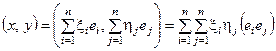 Последнее свойство говорит о том, что для того чтобы задать скалярное произведение в пространстве V достаточно задать скалярное произведение базисных векторов: g ij = (ei, ej). При этом g ij = g ji. Элементы g ij образуют матрицу, называемую матрицей Грамма. Матрица Грамма в евклидовом пространстве симметрична.