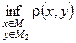 Пусть L – подпространство евклидового или унитарного пространства V. Тогда " x Î V $ x 0Î L Ù $ x ^Î L ^ (причем единственные), такие что x = x 0 + x ^, x 0 – называется ортогональной проекцией вектора х на подпространство L. x ^ – называется ортогональной составляющей вектора х на подпространство L. Расстоянием между двумя множествами M 1 и M 2 называется кратчайшее из расстояний между элементами M 1 и M 2: