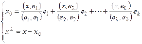 " x Î V x = x 0 + x ^ = a1 e 1 + a1 e 1 + … + a kek + x ^.
