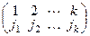 назовем перестановкой элементов 1, 2, …, k. Обозначим