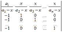 Вычитаем первую строку из всех остальных, а затем, из столбцов определителя выносим: из первого а 1 – х; из второго а 2 – х; …..; из n го аn – х. Получим: