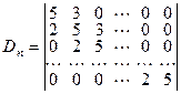 Разложив определитель в правой части соотношения по первому столбцу, запишем новое рекурентное соотношение: Dn = 5 Dn –1 – 6 Dn –2.