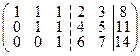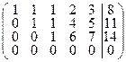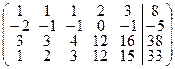 Записав расширенную матрицу системы, преобразуем ее с помощью преобразований не изменяющих ранг матрицы. Цель: в первом столбце все элементы, кроме одного, должны стать равными нулю. Это равносильно тому, что из 2го, 3го и 4го уравнений будет исключена неизвестная х 1. Для достижения цели первую строку, умноженную на 2, –3 и –1 прибавим, соответственно, к 2ой, 3ей и 4ой строке. Получим:
