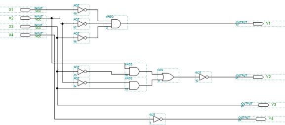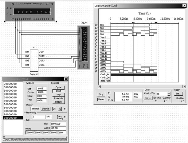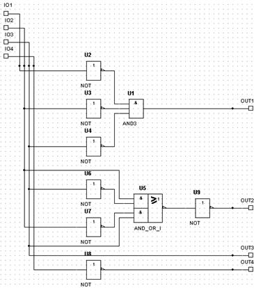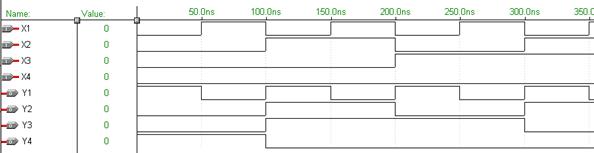 Рис. 6.20 Четырех разрядный преобразователь прямого кода в обратный код. Временные диаграммы