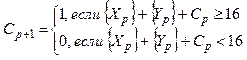 Рассмотрим особенности сложения положительных чисел Ар и Yр в коде с избытком 3. Если Хр + Yр > 10, то {Хр} + {Yр} = Хр + 3 + Yр + 3 > 16, и на выходе двоичного сумматора возникает перенос Сp+1= 1 в следующий десятичный разряд, а остаток суммы будет равен {Хр} + {Ур} - 16, в то время как он должен быть равен