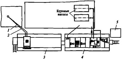 1 - трубопровод долива; 2 - растворопровод; 3 - блок очистки; 4 приемный блок; 5 - шкаф управления электрооборудованием