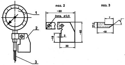 1 - индикатор "0-10" с поворотной шкалой; 2 - опорный кронштейн; 3 - измерительная игла