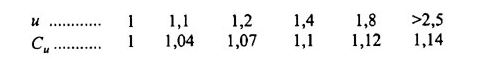 Значения коэффициента передаточного числа Сu приведены ниже: