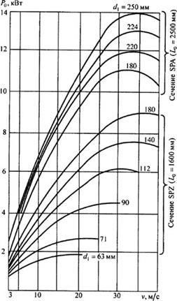 Рис. 5.2. Мощность, передаваемая поликлиновым ремнем в типовых условиях.