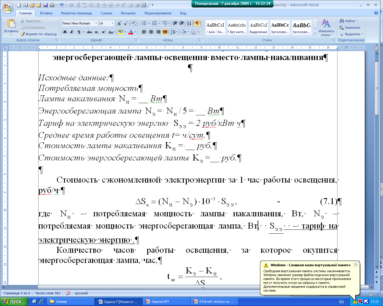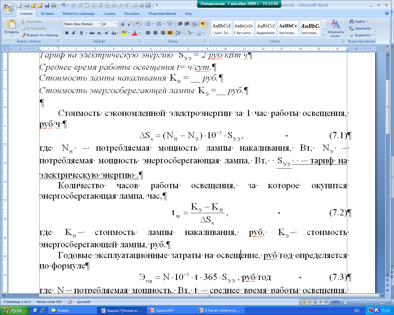 1.Стоимость сэкономленной электроэнергии за 1 час работы освещения, руб/ч