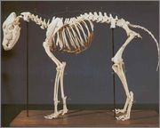 Скелет собаки состоит из осевого скелета и конечностей. К осевому скелету относятся кости головы, позвоночник ребра» реберные хрящи и грудная кость. Скелет конечностей составлю ют кости плечевого пояса, связки и кости конечностей.