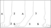 Наклонные (мягкие) пясти характерны для собак удлиненного (растянутого) формата, передвигающихся рысью.