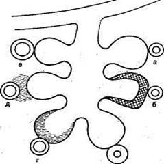 в — утолшение стенок ка пилляров; г — внутриальвеолярный отёк;