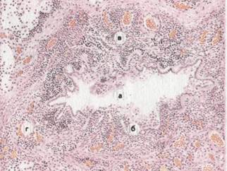2) <Эпителий >< >< >< ><слущивается, >< >< >< ><подвергается >< >< >< ><метаплазии >< >< >< ><в