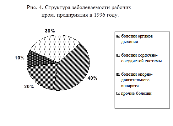 Рис. 5. Структура заболеваемости рабочих пром.предприятия в 1996 году основные обозначения те же).