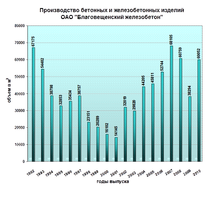 На сегодняшний день ОАО «Благовещенский железобетон» - сильное предприятие Башкирской стройиндустрии, 68 тысяч кубических метров сборных железобетонных и бетонных изделий.
