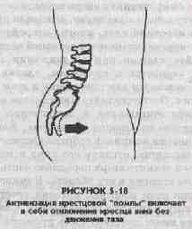Слегка изогните дугой наружу нижнюю часть спины, тем самым отклоняя крестец вниз для приведения энергии в эту точку. Когда вы будете втягивать энергию яичников из передней, средней и задней частей промежности вверх к копчику, а затем к крестцу, удерживайте крестец отклоненным вниз, чтобы помочь активизировать крестцовую "помпу" (рис. 5-18), действие которой будет еще более усилено, если вы несильно напряжете заднюю часть шеи и кости черепа. Сначала в качестве направляющей следует использовать стену, оказывая давление на крестец путем прижатия его к стене. Некоторое время удерживайте энергию в крестце,