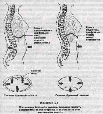в грудной клетке и это может затруднять ее движение вверх и вниз. Вы можете помочь ее движению потиранием живота на уровне нижних ребер до тех пор, пока напряженность диафрагмы и боль не исчезнут. Это поможет диафрагме расшириться, и вы почувствуете, что ваше дыхание стало более глубоким и что вам более легко практиковать нижнее брюшное дыхание.