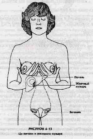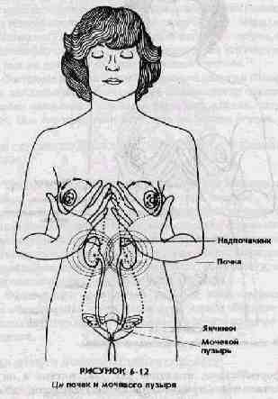 Когда осуществляется массирование меридиана почек, проходящего через груди, имеет место стимулирование почек. В свою очередь, стимулируются также и все другие железы, пока не будут активизированы половые органы, расположенные в конце этого гормонального пути. Гормональные выделения половых желез ответственны за сексуальную реакцию, сексуальную энергию и за функции воспроизведения. Половые железы включают в себя влагалище, матку и груди, но женский сексуальный энергетический центр находится во дворце яичников. Теперь пробуждены все другие энергии.