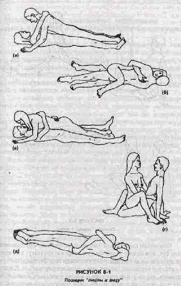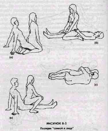 (2) Мужчина лежит на спине, женщина на коленях лицом к его ступням (рис. 8-2(6)).