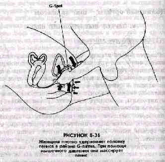 влагалище и слегка подтягивайте вверх мышцу ци, чтобы вести оргазм выше. Когда вы достигнете точки оргазма, отдохните, стараясь, чтобы в это время головка полового члена партнера касалась G-пятна. Если он находится в правильном месте, это ощущается, как если бы он вошел в соответствующее ему гнездо. Отдохните в этом положении и обменяйтесь сексуальной энергией.