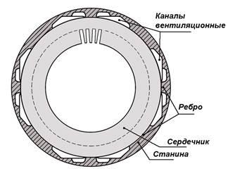 продольные ребра, образующие аксиальные вентиляционные каналы (рис. 8). Для спуска влаги, появляющейся в процессе