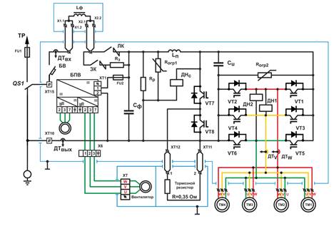 Принципиальная схема тягового инвертора приведена на рис. 15.
