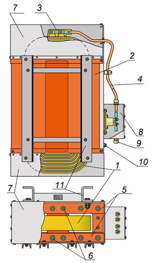 Конструкция тормозного резистора представляет собой набор малоиндуктивных резистивных элементов, помещенных в стальной корпус 4 (Рис. 17), оборудованный принудительной вентиляцией.