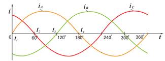 По катушкам проходят токи, образующие трехфазную симметричную систему.