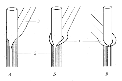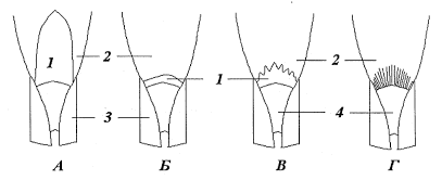 Рис. 3. Различные формы язычка у злаков (на рисунке изображена область перехода