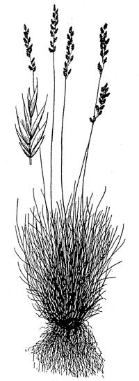 Рис. 9. Овсяница желобчатая (типчак). Жизненная форма: плотнодерновинный (плотнокустовой) многолетник с внутривлагалищным кущением
