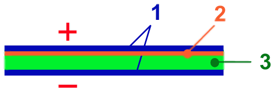 Рис. 2. Принцип устройства электролитического конденсатора.