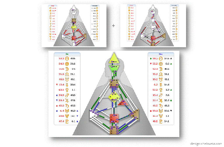 Анализируя совместную карту, можно понять, какого рода отношения отличают этих людей и какими словами, поступками, настроениями они наполнены. Среди прочего, это определяется количеством открытых центров, которые остаются после создания композита.