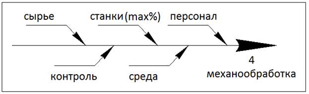 Стратифицированная диаграмма Парето наглядно показывает, что большая часть отходов образуется на этапе механообработки. Для выяснения источников затрат на этом этапе необходимо построить причинно-следственную диаграмму.