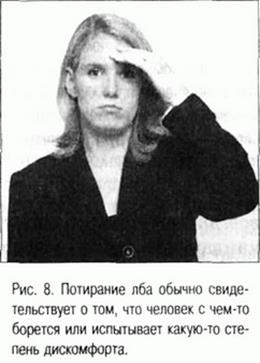 6. В определенных обстоятельствах, когда вам необходимо лучше понять мысли и намерения человека, вы можете сами сказать или сделать то, что должно вызвать у него стресс, а затем наблюдать, не приведет ли это к более яркому проявлению его успокаивающих движений.