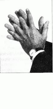 Выразительные сигналы больших пальцев рук настолько точны, что их можно успешно использовать для распознавания тех, кто доволен собой, И тех, кто с трудом сводит концы с концами. Мне не раз приходилось видеть, как на судебных процессах люди начинали свое выступление уверенно и складывали руки «домиком», но уже после первого трудного вопроса их большие пальцы оказывались в карманах. Такое поведение больших пальцев рук напоминает поведение ребенка, который стоит перед расстроенной матерью и показывает, как быстро твердая уверенность в своей правоте может смениться полной растерянностью.