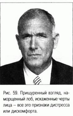 Расстроенный человек может демонстрировать сразу все или только некоторые из этих невербальных сигналов, и они могут быть малозаметными и кратковременными или ярко выраженными и длиться несколько минут, а то и дольше. Вспомните прищуренный взгляд Клинта Иствуда в старых спагетти-вестернах перед началом дуэли на пистолетах. Этот взгляд говорит сам за себя. Конечно, актеров специально учат контролировать выражение лица, чтобы его легко было узнать. Однако в реальном мире заметить эти невербальные признаки иногда трудно, так как их намеренно маскируют или просто не обращают на них внимания (см. рис. 59).