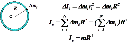 Представим диск в виде совокупности тонких колец разного радиуса. Момент инерции каждого такого кольца, радиус которого ri и ширина Δri,