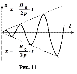 Из рисунка видно, что амплитуда колебаний точки при резонансе нарастает с течением времени. Поэтому если рабочая частота выше собственной частоты колебаний, то стараются достичь ее как можно быстрее, чтобы при переходе через резонансную частоту не успели развиться, слишком большие колебания.